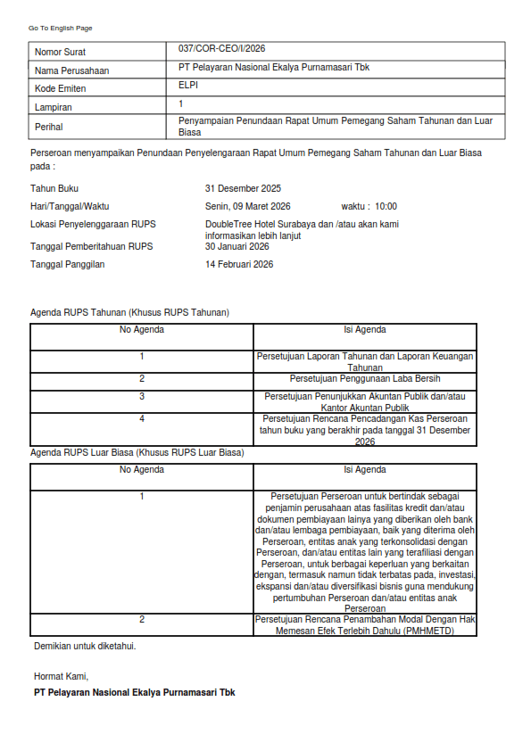 RUPS PEMBERITAHUAN 2026